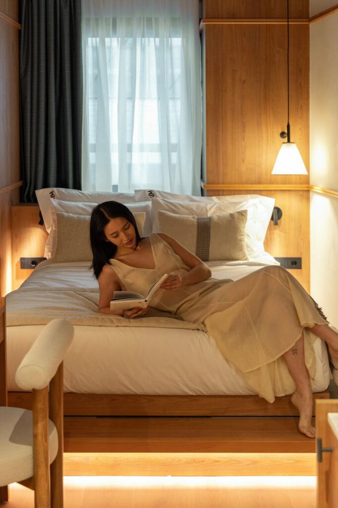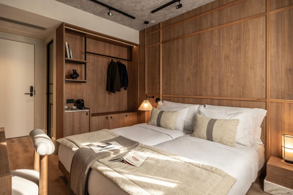 Πέντε όροφοι φιλοξενούν 34 δωμάτια επισκεπτών, συμπεριλαμβανομένων τεσσάρων σουιτών και δύο πλήρως προσβάσιμων δωματίων, σχεδιασμένων για να υποστηρίζουν την ιδιωτικότητα, την άνεση και τα σύγχρονα πρότυπα φιλοξενίας. Στην ταράτσα, ένα πανοραμικό μπαρ και τζακούζι προσφέρουν υπερυψωμένη θέα στην πόλη, δημιουργώντας έναν ξεχωριστό προορισμό εντός του ξενοδοχείου.