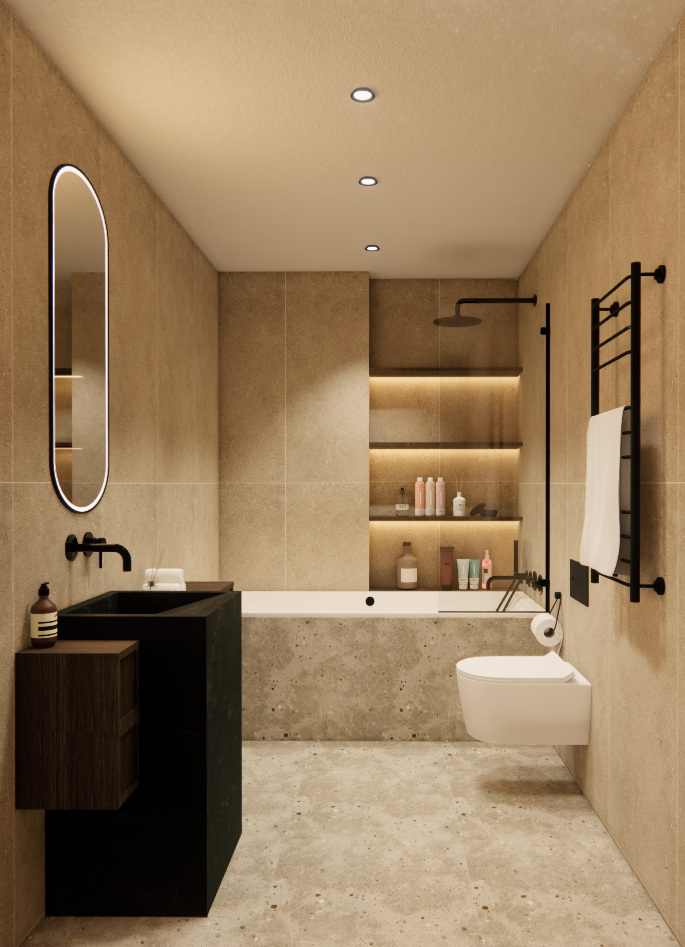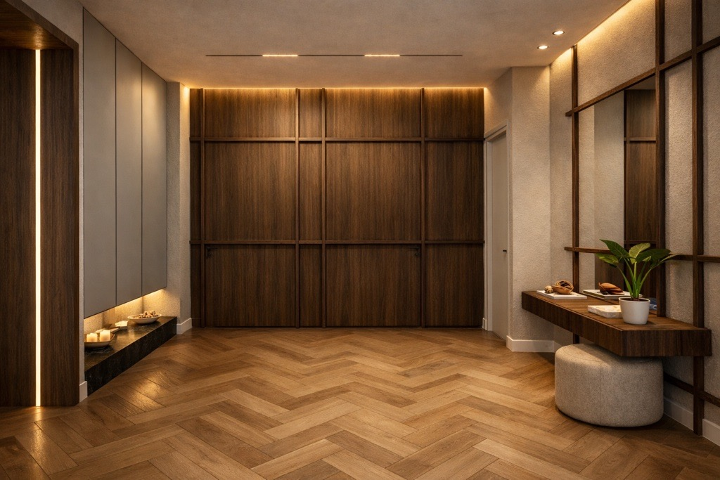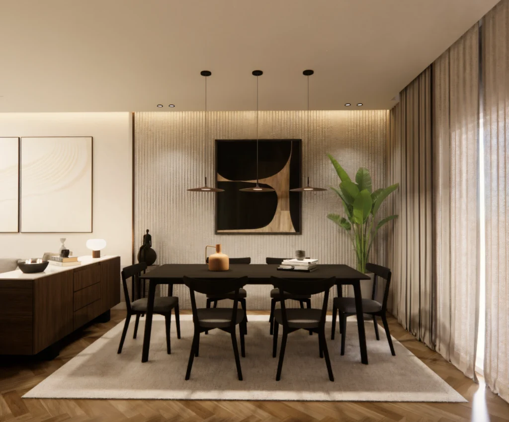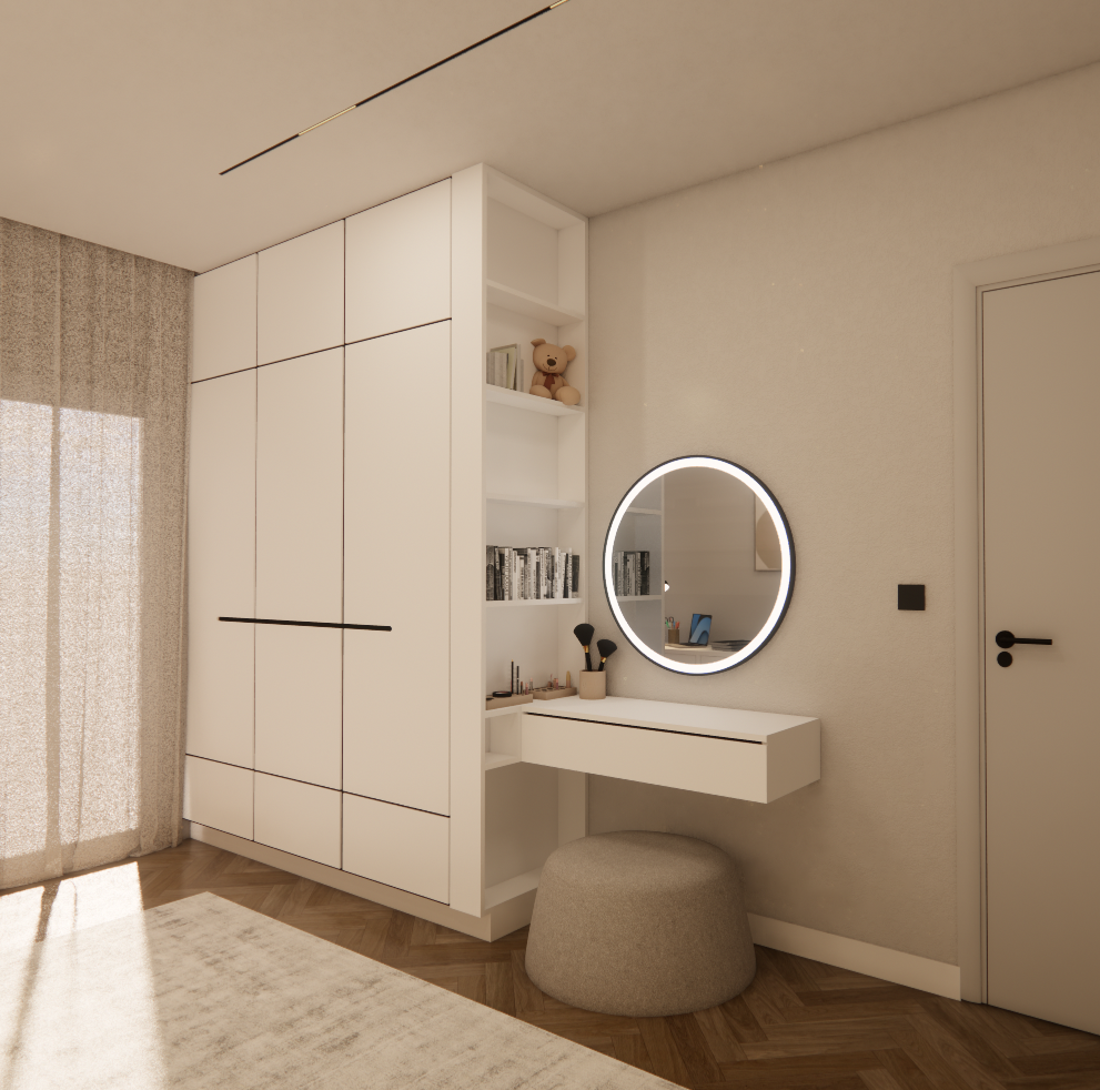Ο σχεδιασμός ακολουθεί μια συνεκτική αρχιτεκτονική αφήγηση, όπου το ξύλο, οι επιφάνειες με υφή και ο απαλός φωτισμός δημιουργούν ένα ήρεμο και εκλεπτυσμένο περιβάλλον διαβίωσης. Έμφαση δίνεται στην απλότητα, τη χωρική σαφήνεια και μια συνεπή οπτική ταυτότητα σε όλο το διαμέρισμα. Ειδικά σχεδιασμένα στοιχεία, όπως ενσωματωμένοι αποθηκευτικοί χώροι, επένδυση τοίχων και έπιπλα κατά παραγγελία, ενισχύουν τη λειτουργικότητα, διατηρώντας παράλληλα μια καθαρή και ενιαία αισθητική.