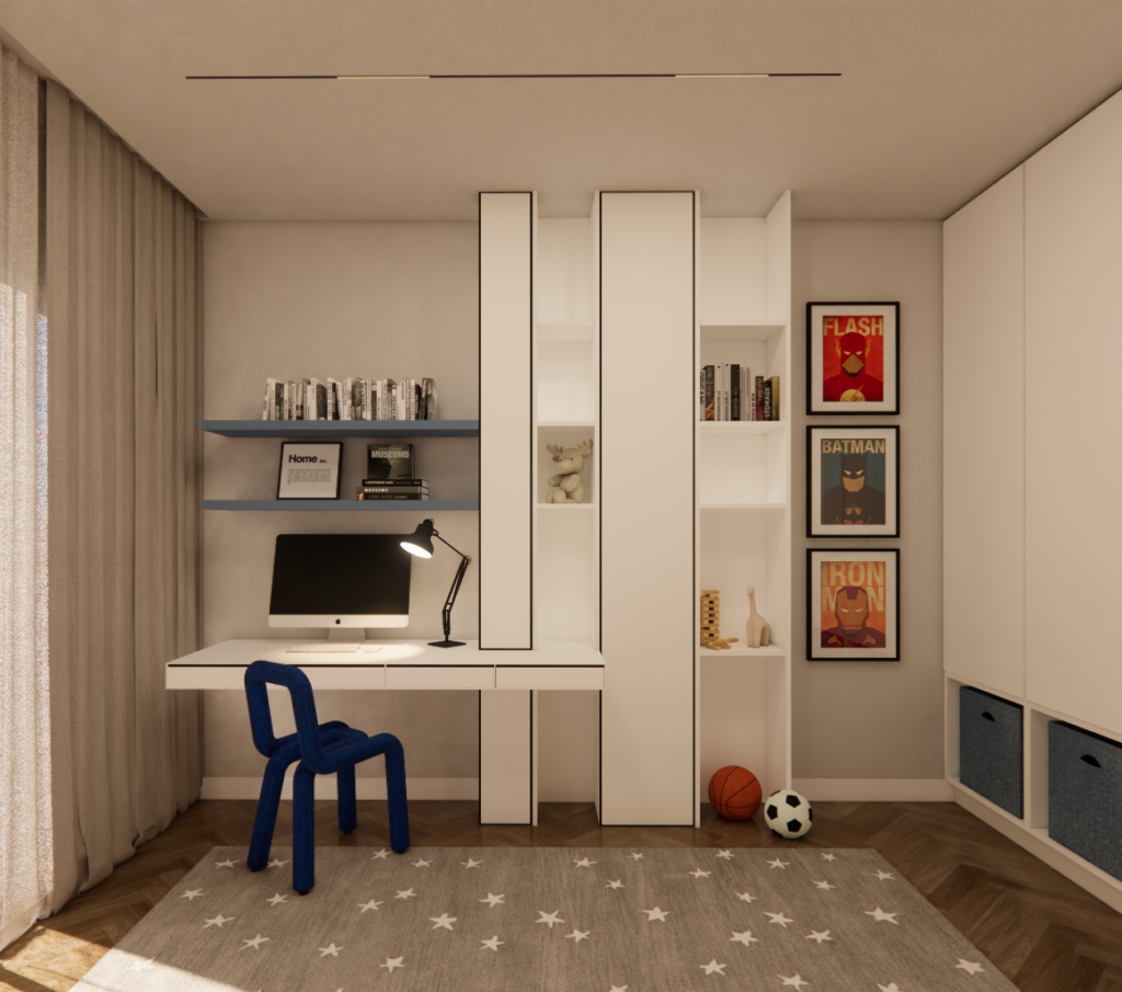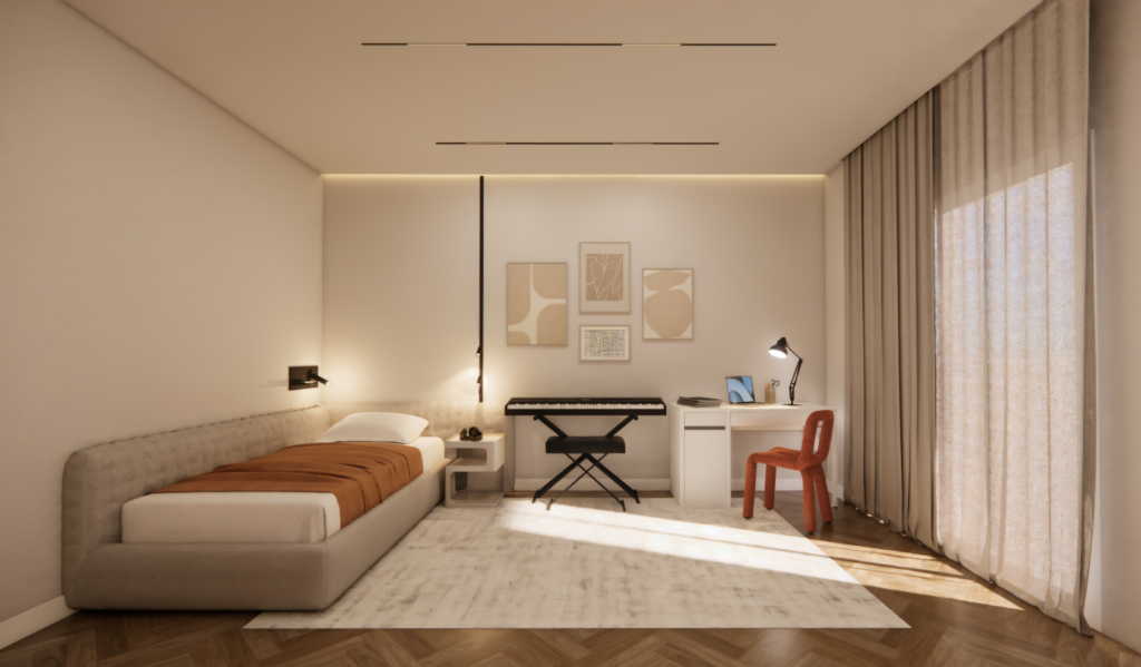 Στα υπνοδωμάτια κυριαρχούν πιο απαλά σχεδιαστικά στοιχεία, όπως καμπύλες γραμμές, ζεστές υφές και έμμεσος φωτισμός. Το αποτέλεσμα είναι μια ήρεμη και οικεία ατμόσφαιρα, με έμφαση στην άνεση και τη χαλάρωση.