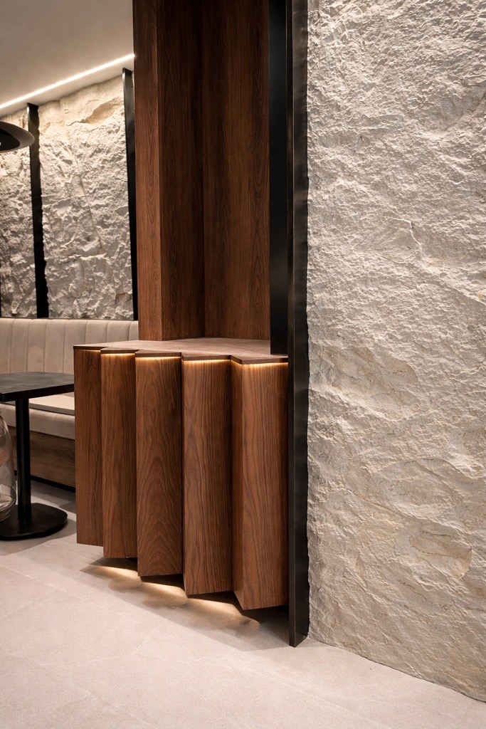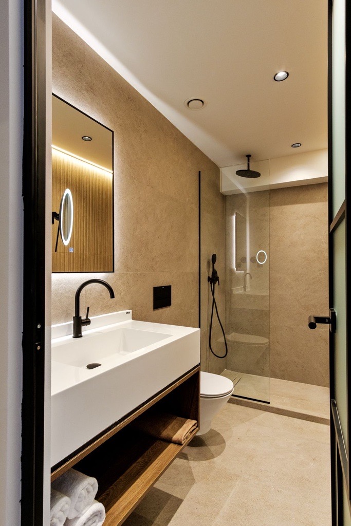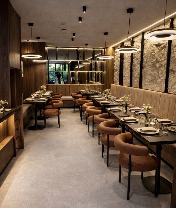 Το έργο ενσωματώνει μια μετρημένη σύνθεση μοντέρνας κομψότητας και αισθητηριακής ζεστασιάς, προσφέροντας ένα διαχρονικό περιβάλλον φιλοξενίας στην καρδιά της Αθήνας.