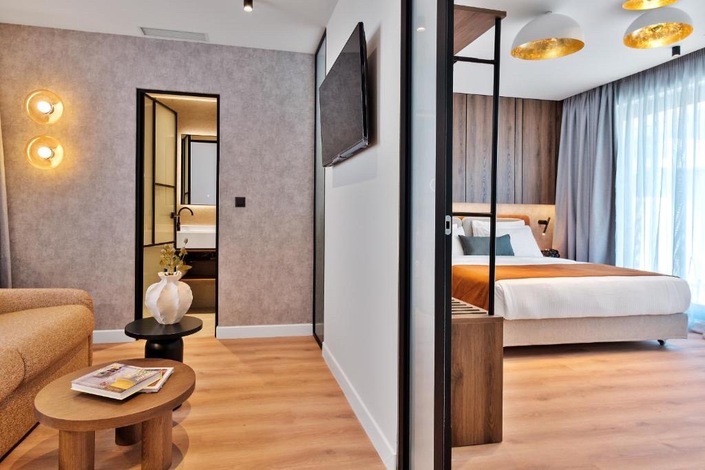 Κάθε στοιχείο, από τη συμμετρική πρόσοψη έως τους ζεστούς εσωτερικούς χώρους, έχει σχεδιαστεί με σκοπό να προσφέρει μια αρμονική εμπειρία φιλοξενίας. Οι κοινόχρηστοι χώροι, οι σουίτες και οι χώροι συνεδριάσεων συνδυάζουν τη λειτουργικότητα με την αισθητική απόλαυση, προσκαλώντας τους επισκέπτες να απολαύσουν έναν προσεκτικά μελετημένο συνδυασμό κομψότητας και ζεστασιάς.