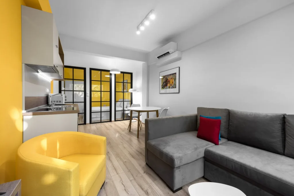 Κάθε δωμάτιο οργανώνεται ως πλήρης διαβιωτική μονάδα, ενσωματώνοντας ιδιωτικό σαλόνι με κουζίνα, ξεχωριστό υπνοδωμάτιο και μπάνιο. Αυτή η τυπολογία τύπου διαμερίσματος ενισχύει την αυτονομία και την άνεση, καθιστώντας τους χώρους κατάλληλους τόσο για σύντομες όσο και για εκτεταμένες διαμονές. Οι κατόψεις είναι καθαρές και διαισθητικές, διασφαλίζοντας ότι η κυκλοφορία και η καθημερινή χρήση παραμένουν αβίαστες και ανεμπόδιστες.