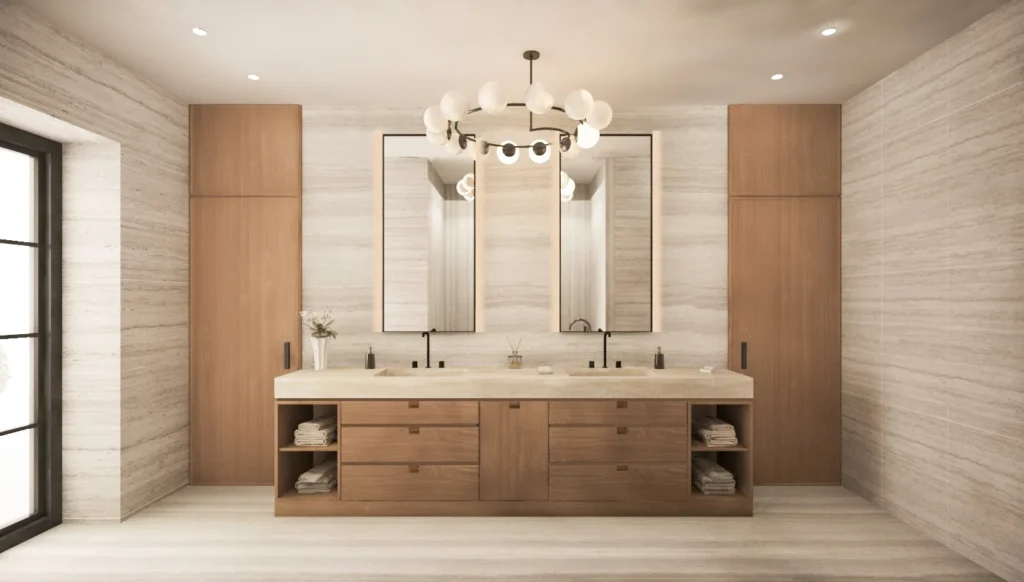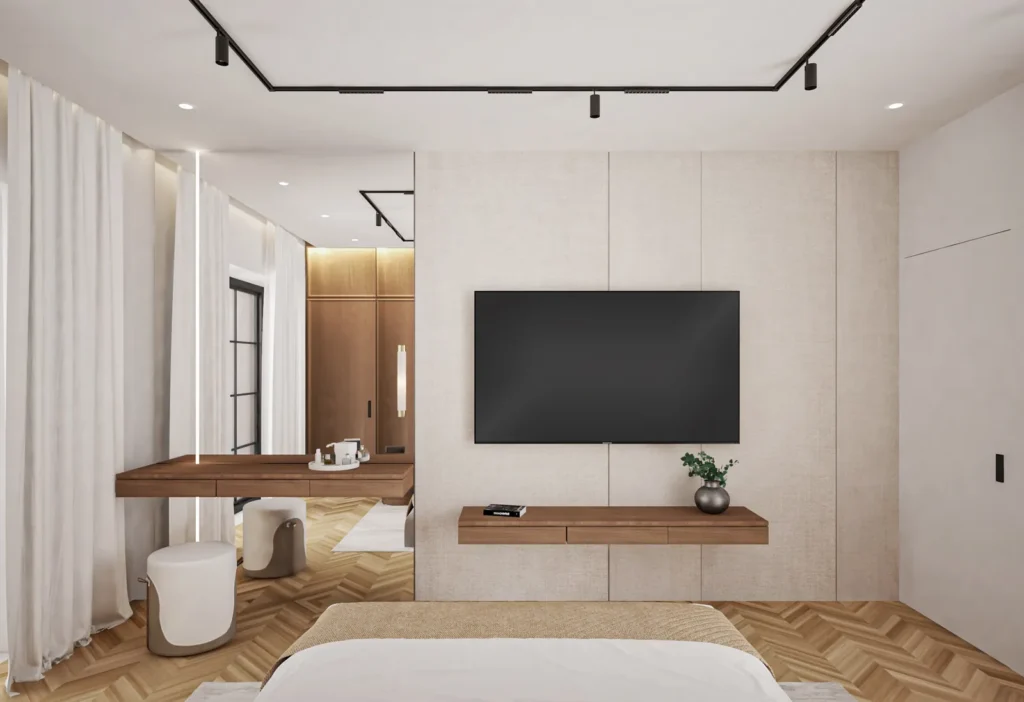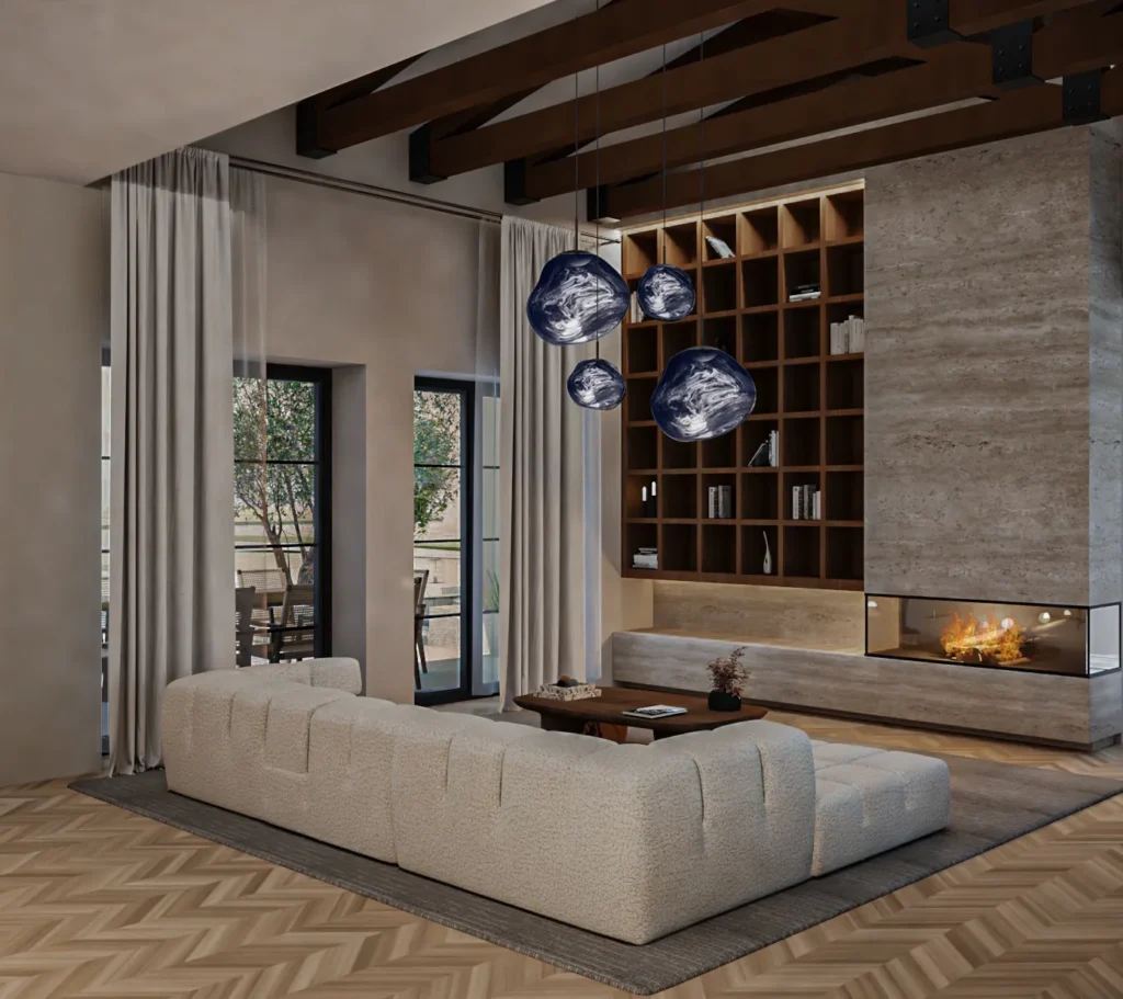 Σε αντίθεση με το απτικό, γήινο εξωτερικό, ο εσωτερικός σχεδιασμός ακολουθεί μια μοντέρνα κλασική προσέγγιση, εξισορροπώντας τη διαχρονική κομψότητα με τη σύγχρονη διαύγεια. Καθαρές αρχιτεκτονικές γραμμές συνδυάζονται με εκλεπτυσμένες λεπτομέρειες, ζεστές υφές και προσεκτικά επιλεγμένη επίπλωση, δημιουργώντας χώρους που είναι ταυτόχρονα εκλεπτυσμένοι και φιλόξενοι. Φυσικά υλικά, απαλές τονικές παλέτες και ελεγχόμενος φωτισμός δημιουργούν οπτική συνέχεια και ηρεμία, ενώ η ενσωματωμένη τεχνολογία εξασφαλίζει άνεση, αποδοτικότητα και προσαρμοστικότητα για την καθημερινή διαβίωση.