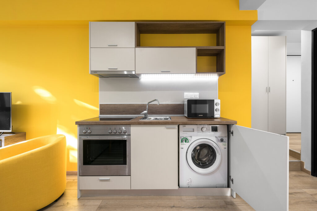 This apartment-style configuration enhances flexibility and autonomy, making the hotel ideal for both short stays and long-term accommodation in Thessaloniki. Circulation is simple and intuitive, ensuring comfort in daily use.