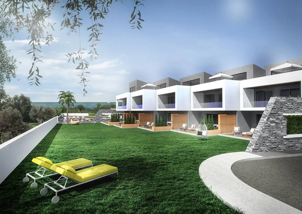 Set within a pristine natural landscape near the village of Kalandra, Delight Ultimate Residences is conceived as a refined seaside residential complex where architecture, landscape, and lifestyle are seamlessly interwoven. Nestled among olive groves and pine trees, the project occupies a privileged location on the western side of the Kassandra peninsula, just a short distance from the sandy shoreline.