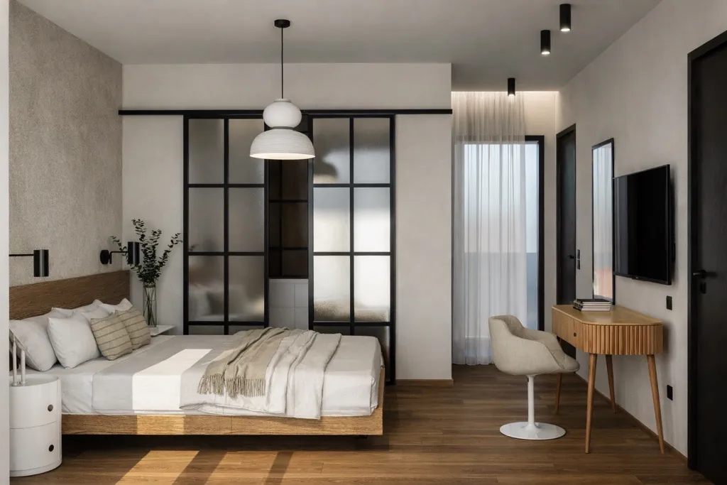 A calm and intimate space designed for rest, defined by soft light and clean lines