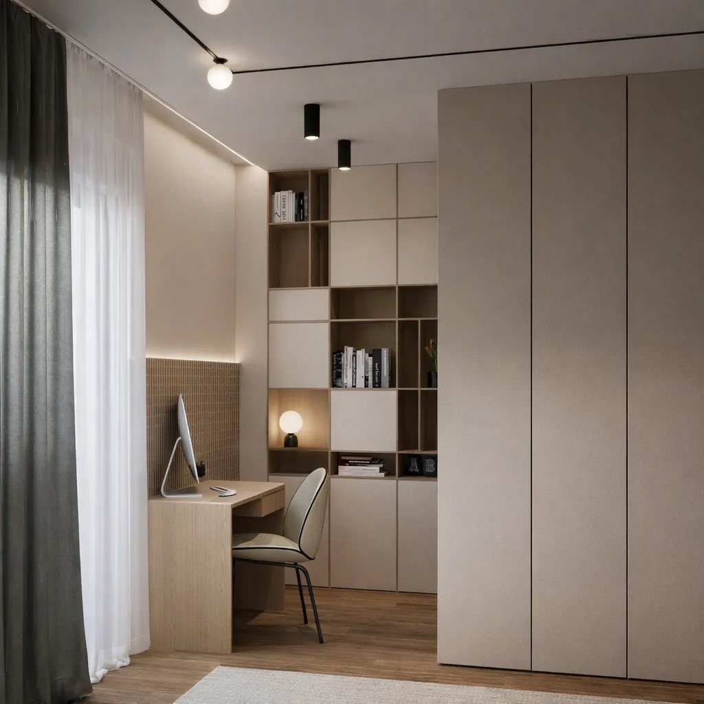A warm space balancing comfort, creativity, and simplicity
