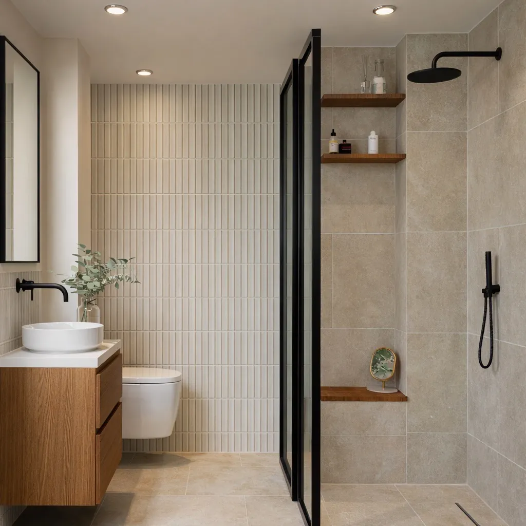 A minimal bathroom combining functionality, clean surfaces, and a serene atmosphere